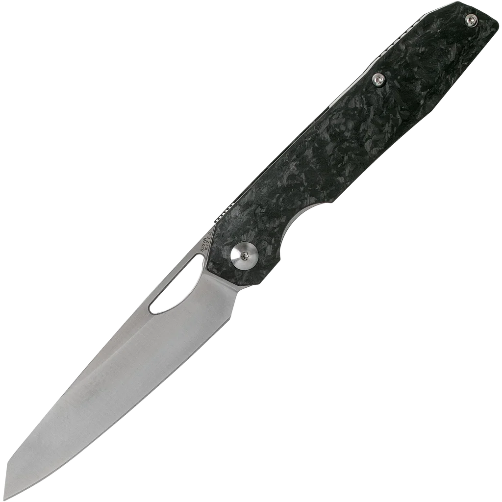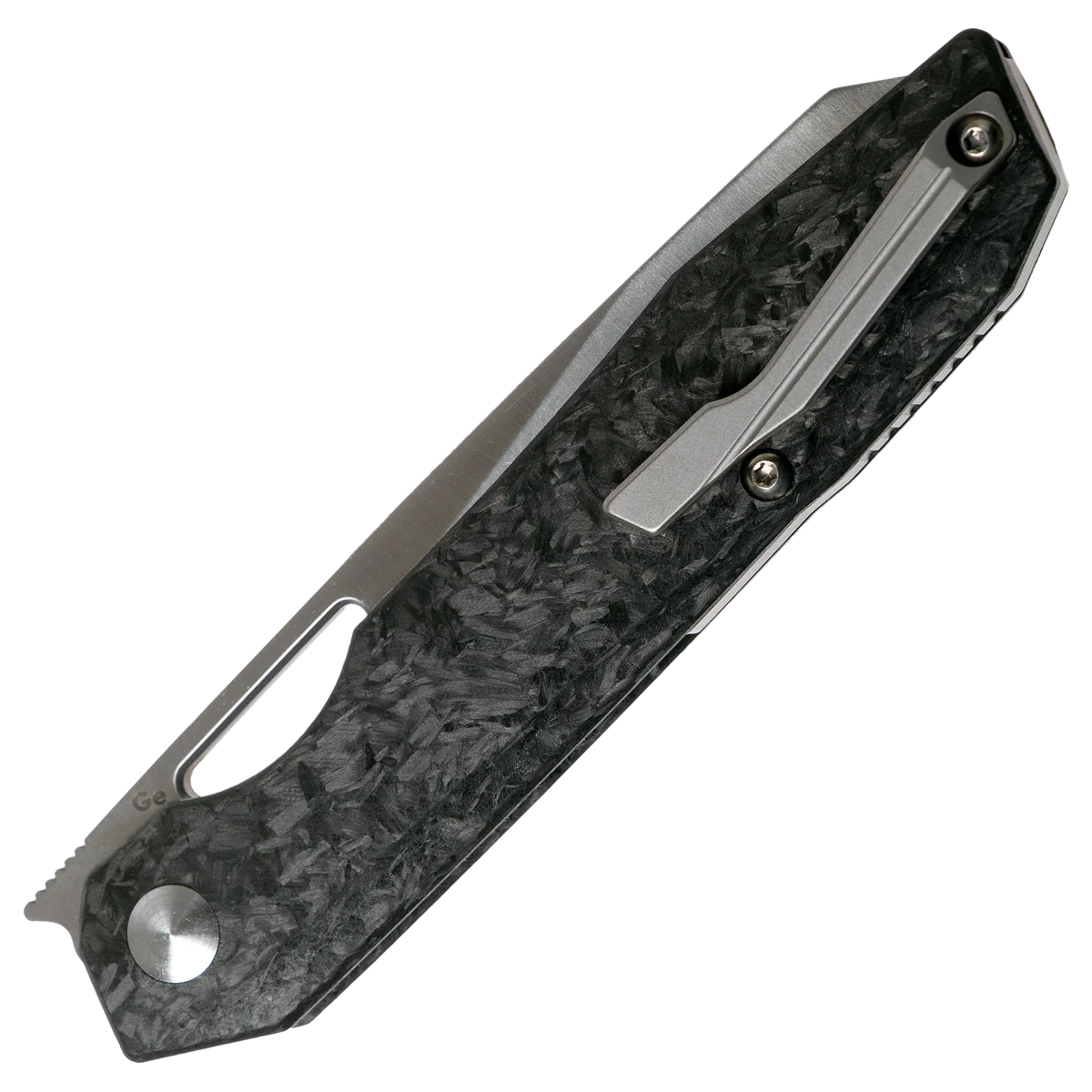 The Genie front flipper from in-house designer Gage at Kizer Cutlery has a similar look to the Raja from Sebastian Irawan with its reverse tanto blade and ergonomic handle shape. The main difference is that this guy is about an inch shorter overall making it much more EDC friendly. To open the blade, follow your thumb along the extended spine, and in a smooth, fluid motion follow the curvature of the handle to rotate the blade out. Once proficient, the detent and ball bearing pivot allow for deliberate flicking of this blade as fast as any other. It also has a thumb slot for more traditional opening that won't impede cutting performance in any way. With a carbon fiber handle, a stonewashed CPM-S35VN steel blade, and solid lock-up, you'll be cutting reliably as long as you need. The Bladesmith Series is Kizer's collaboration/partnerships with the custom knife world. They license designs from custom knifemakers and forge a partnership utilizing the best from both sides. The custom designers bring their innovative and unique designs, while Kizer brings their highly specialized technical manufacturing expertise and quality. Together, they create products that proudly bear the names of the designer and Kizer Cutlery.