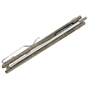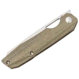The Genie front flipper from in-house designer Gage at Kizer Cutlery has a similar look to the Raja from Sebastian Irawan with its reverse tanto blade and ergonomic handle shape. The main difference is that this guy is about an inch shorter overall making it much more manageable. To open the blade, follow your thumb along the extended spine, and in a smooth, fluid motion follow the curvature of the handle to rotate the blade out. It also has a thumb slot for a more traditional opening that won't impede cutting performance in any way.