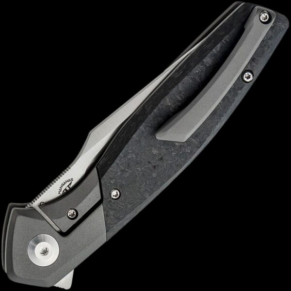 Grazioso is defined as something that is graceful or has an elegant style and this liner lock folding knife is just as described. The knife is a beautiful piece of art designed by Sherif Manganas who is a new collaborator with Kizer. Its satin hardware lights up the handle and pulls the whole design together.