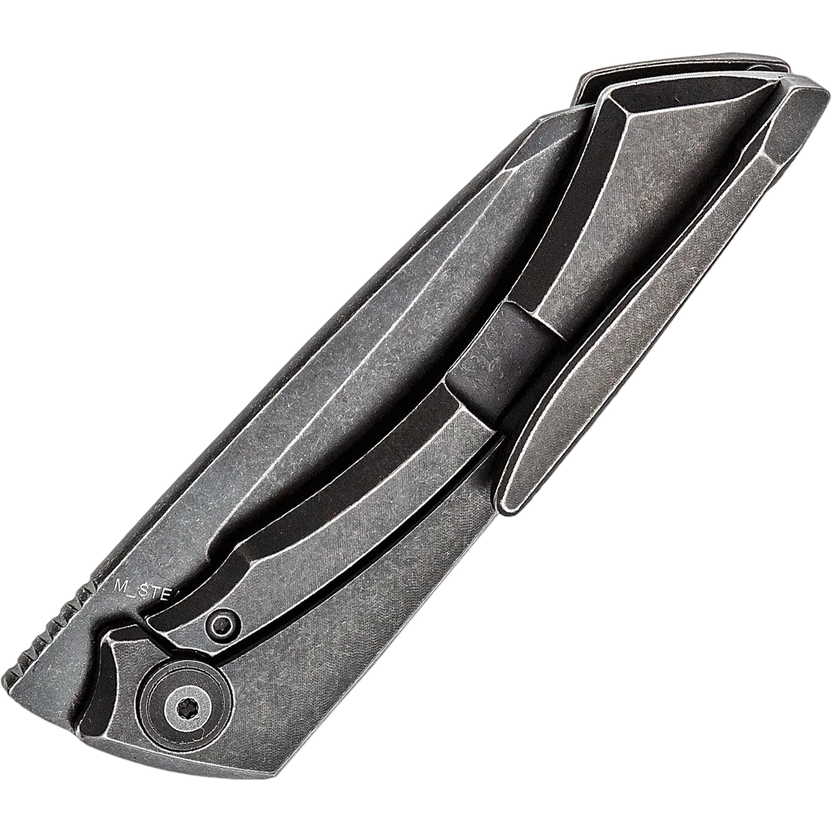 This knife is a Joel Scott-Turner design from Vitesse Design. Joel Scott-Turner completes this new knife with aesthetically pleasing features and great EDC functionality. The knife is sleek and classy with a black stonewash handle and wharncliffe blade that is versatile and all-around a fantastic shape. The blade steel is CPM-S35VN with a black stonewash finish. The titanium handle tapers in and out following a smooth curve that's formed into the shape of the hand.