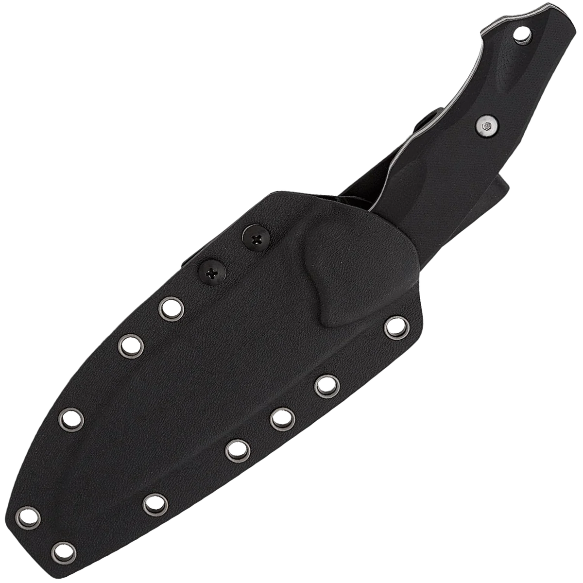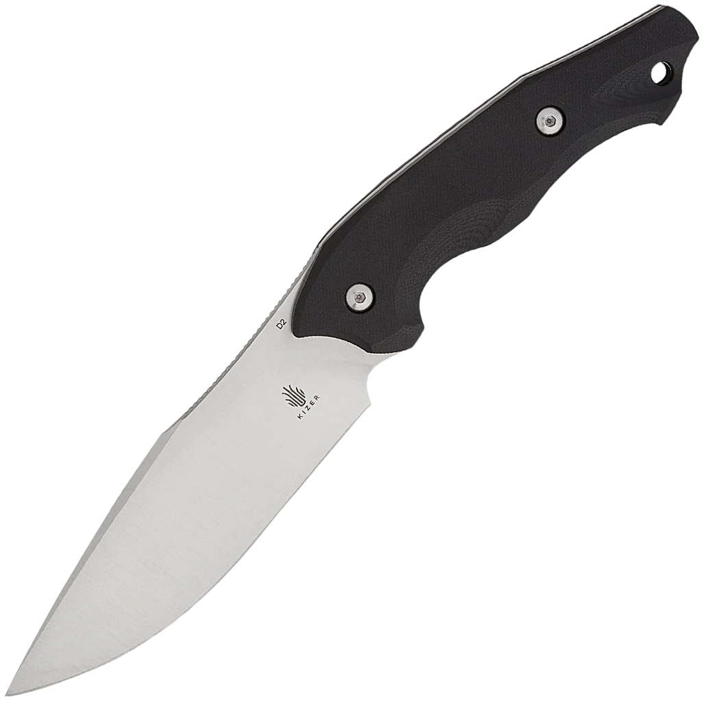 The Kizer Magara is a fixed blade knife designed by Artur Szuta. The deep-bellied clip point blade has the best of both worlds, a pointy tip and great belly for slicing. The black G10 handle is comfortable to grip and weather-resistant to enhance usability further. The Magara has a lanyard cutout and Kydex sheath to safely transport the knife.