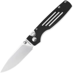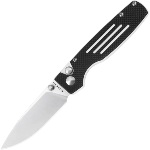 This Kizer Original Tuxedo is a chic pocket knife designed by the people at Kizer themselves. You open the droppoint blade with the thumb studs. A button lock ensures the blade remains in place, whether open or closed. To close the knife, simply press the button and the blade will smoothly return to the handle. This combination guarantees hours of fidgeting fun, Kizer Original Tuxedo blade The blade is made from 154CM steel with a satin finish. A stainless type of steel that retains its sharpness well. In addition, you can also easily sharpen it yourself if the knife starts to lose some of its sharpness over time. You can easily open the knife with one hand thanks to the thumb stud on each side of the blade. Ceramic ball bearings ensure that the blade moves smoothly. Kizer Original Tuxedo handle The handle is made from black and white G10. This is a composite material made from glass fibres and synthetic resin. It is lightweight and is famous for its strength and grippy texture. Thanks to the deep pocket clip you can easily carry the knife in your pocket.
