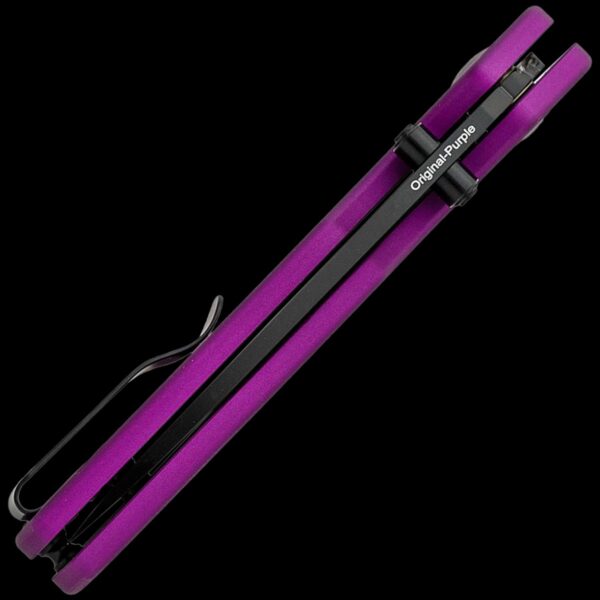 Take your knife game from mundane to the height of class with the newly designed Original. The knife was designed by Kizer to combine peak quality with elegant style. Employ the thumb stud to fire the 154CM drop point blade into action; it's held in place with a button lock. The handle is made of purple oxide coating aluminum alloy, and has a good contact experience when grasping it. It is equipped with a deep carry pocket clip for convenient carry. Step up your game and feel the fire of true class with the new Original!