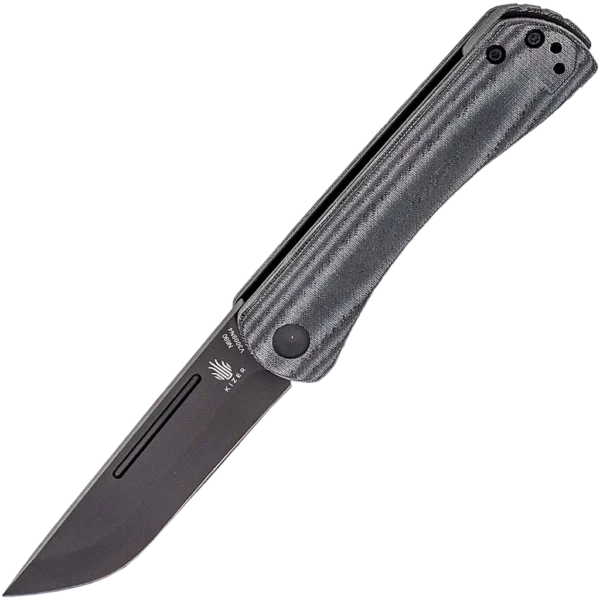 The Kizer Vanguard Pinch is a non-locking detent slip joint knife with great materials and at a great price. This one has a black canvas micarta handle and a Bohler N690 blade that opens with dual nail nicks. The Pinch is the first Kizer knife that uses Detent Action to keep the blade in the open and closed positions. It functions like a traditional slipjoint model but instead of a backspring, a perfectly set detent does that job for you. This allows for much more fluid opening and closing of the blade. The reversible deep-carry pocket clip allows for a comfortable and discreet EDC.
