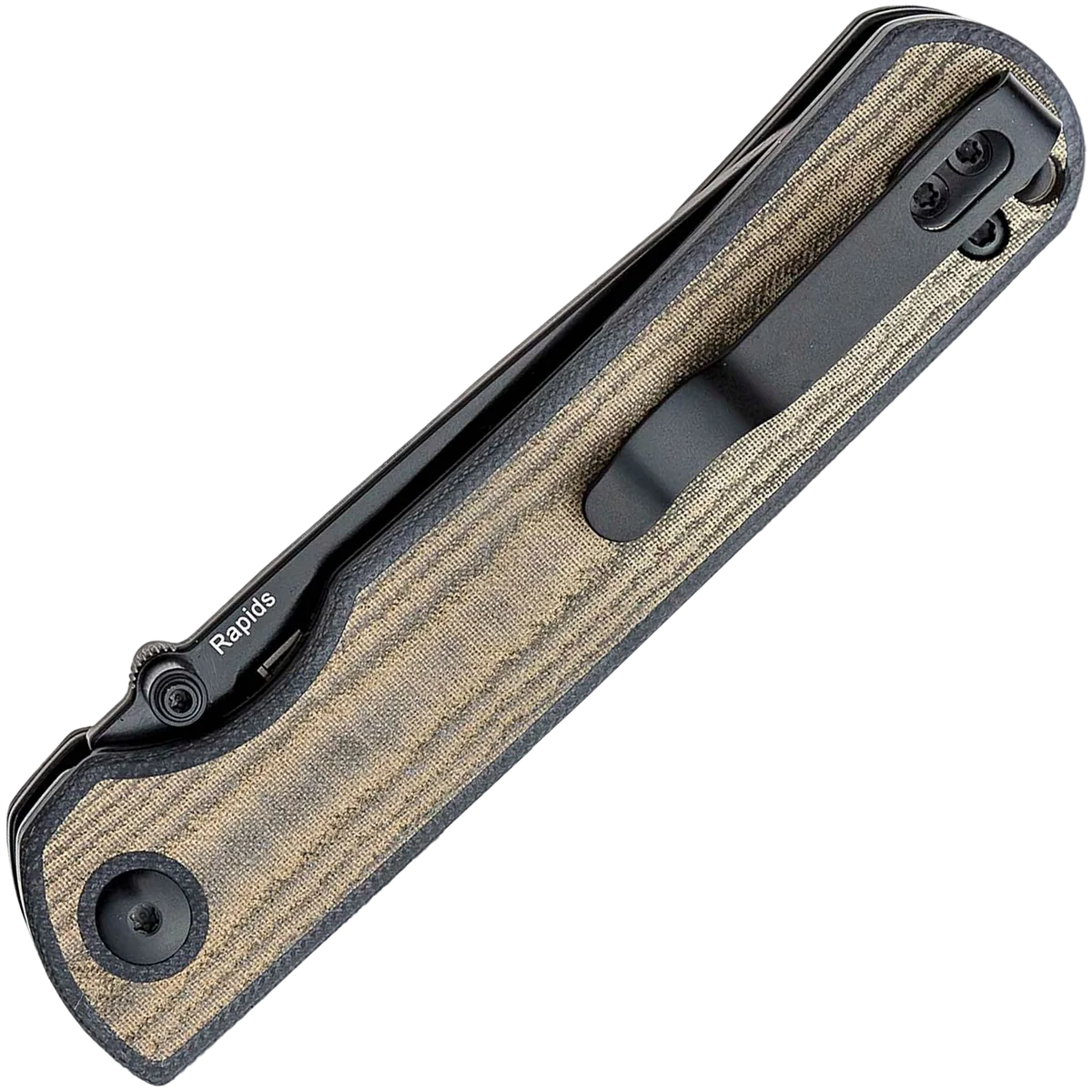 The Rapids design from Carlos Elstner is a straightforward utility knife meant for quick work. Its ergonomic handle of contoured Micarta and G10 provides a solid grip under adverse conditions and is fully flow-through with standoffs for easy cleaning. The deep carry pocket clip is reversible for left or right-hand carry and it allows just a fraction of the knife to show outside the pocket. The dual thumb studs are perfectly placed for easy flicking and a lanyard hole on the butt end completes the package.