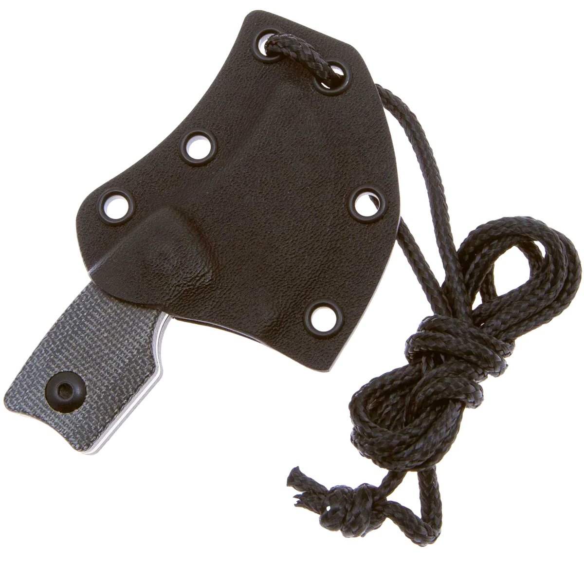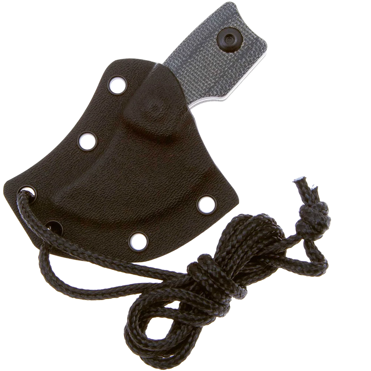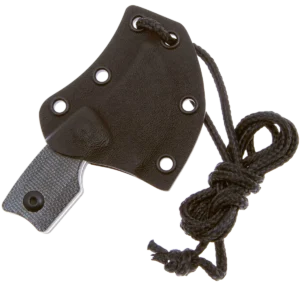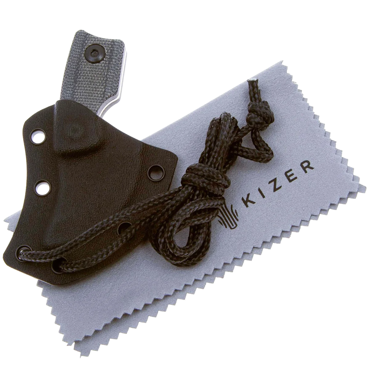 The Rocker is designed by Dirk Pinkerton in collaboration with Kizer Knives and is the first neck knife by Dirk that they have made. This knife has a heavy geometric design influence that still manages to balance comfort and function despite its small size. The upswept blade measures only 1.38" with a heavy curve up that makes the cutting surface a quarter circle shape. The knife blade is made from durable D2 with a stonewashed finish that is great for daily use knives. The handles are made from slip-resistant Micarta and have several features like a finger choil and curved end of the handle to help provide a solid grip even with its small size. The curved back of the blade fits your thumb perfectly and the jimping ensures it won't slip. The Rocker comes with a Kydex sheath with a paracord lanyard that allows it to always be at hand, further enhancing its everyday usefulness.