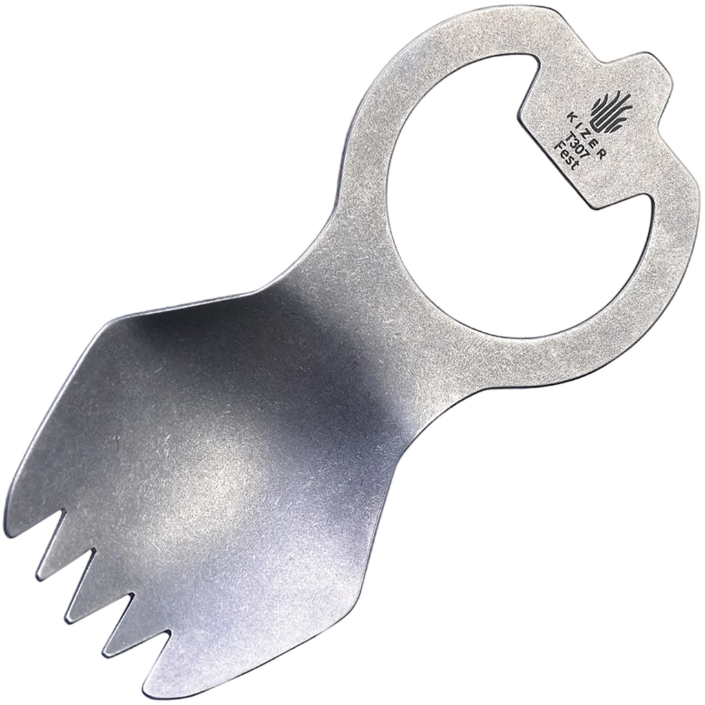 The Kizer Spork is a compact and lightweight spork made from titanium. It also features a bottle opener to make it the perfect tool for an impromptu picnic, camping trip or anything in between. Take it anywhere and always be ready to dig in. Kizer uses high-tech wire EDM machines to cut the parts. This method is slower than laser or waterjet but Kizer feels the quality is worth the wait. Each component in Kizer knives is precision machined and engineered to the finest tolerances. The final fit, finish, action and sharpness of each knife is achieved entirely by hand, employing the irreplaceable craftsmanship developed by generations of cutlery masters. Dedicated craftsman honoring the long-term goal of making the best knives possible is what Kizer brings to you.