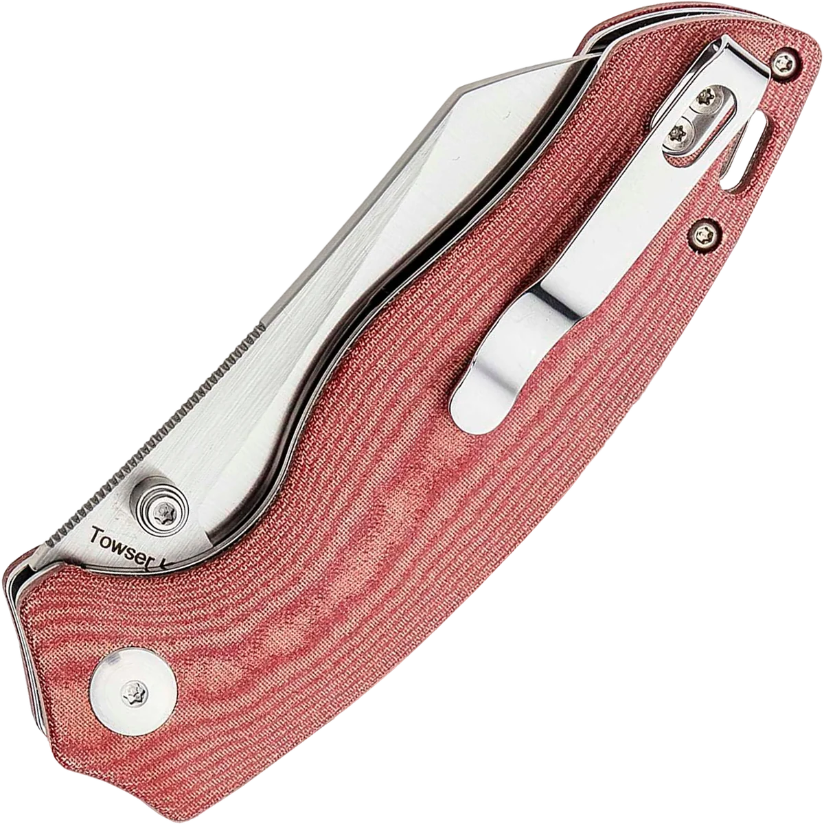 The Towser K is a distinctive, unique folding knife designed to be a functional and attractive EDC knife. If there were ever such thing as a folding Santoku kitchen knife, it would look a lot like this. If you're cutting against a surface, the angle of the edge and the design of the handle keeps the fingers away from the table. Be it tape, food, or packaging, the Towser K will make your cutting job easy and comfortable. The Towser K features dual thumb studs, a tip-up pocket clip and a stainless steel liner lock mechanism.