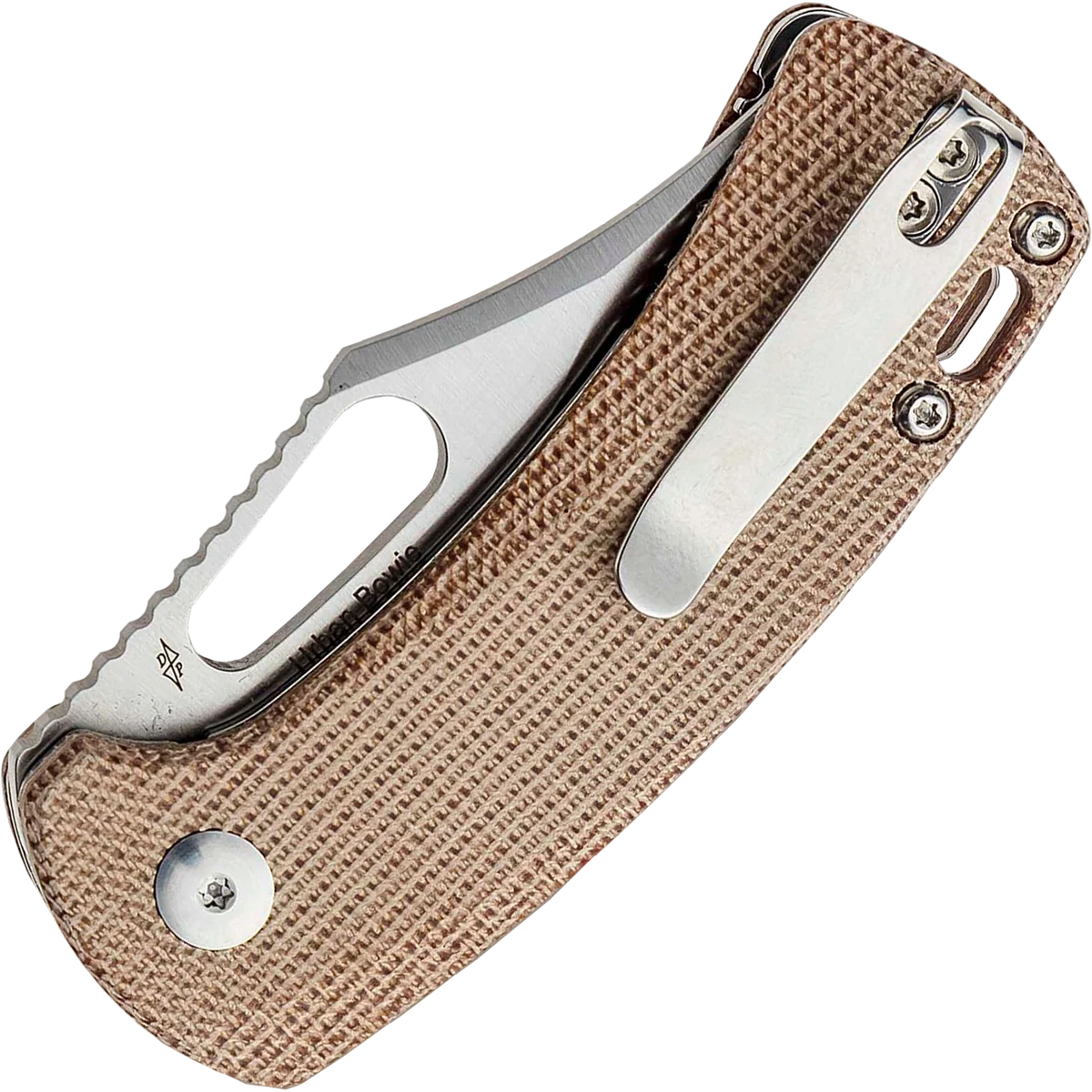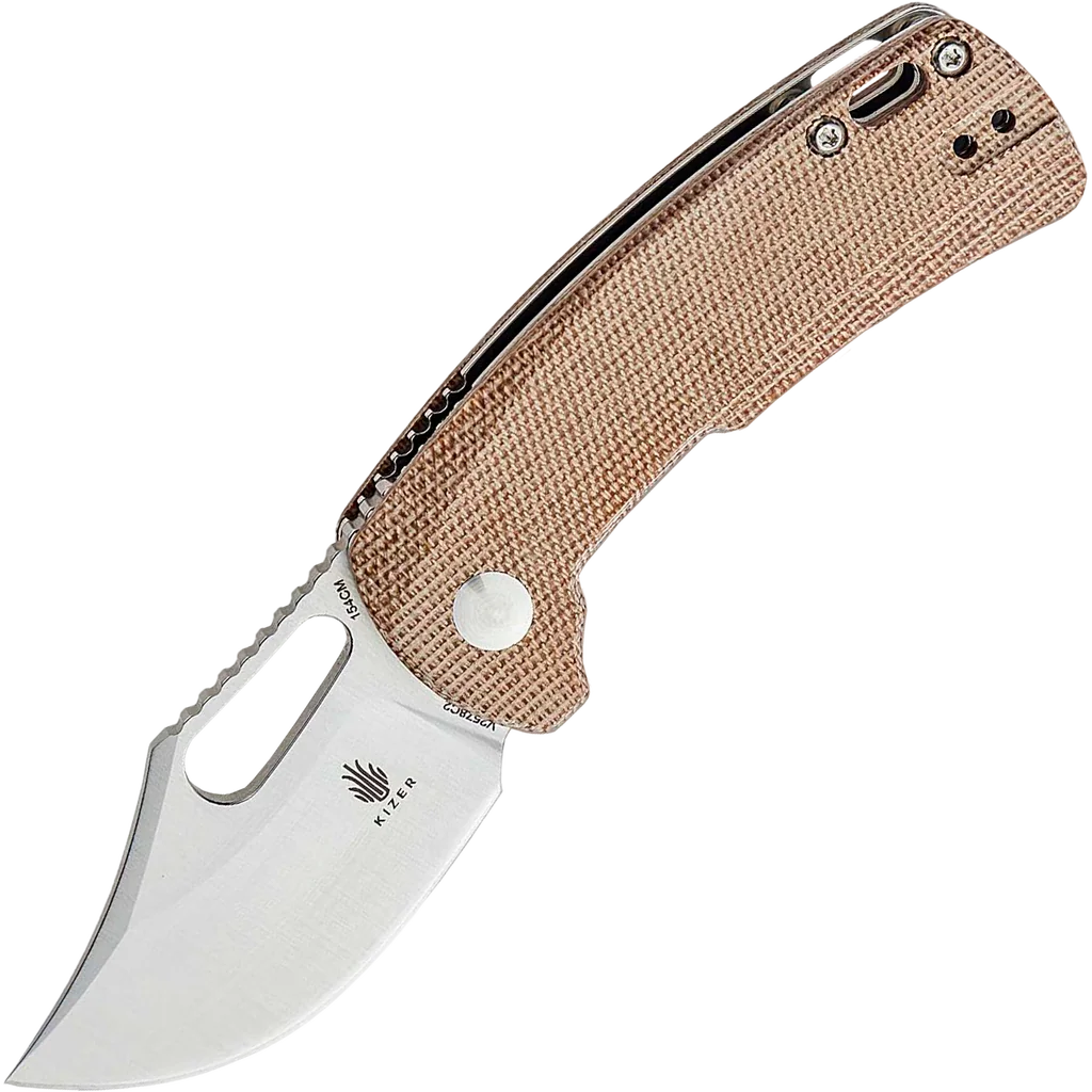 Designed by Dirk Pinkerton, the Urban Bowie is a very utilitarian folding knife packing a 2.37" 154CM Bowie blade and thumb hole with ample jimping into a slim and light Micarta handle. The Vanguard Series brings excellent value to high-quality designs. Since the start of Kizer Cutlery, they have focused on the high end of the knife market with their impeccable quality and premium materials. This has earned them a place in the hearts of their fans. To increase the accessibility of Kizer brand products, they took the designs of the Bladesmith and Prime Series, and while keeping the quality at the same high level, re-forged them using materials that bring extra value for the money spent. Kizer uses only materials that have stellar performance, such as M390 for the blades and micarta or stainless steel for the handles. This way, Kizer products are available at all budget levels but still maintain that incredible quality of construction.