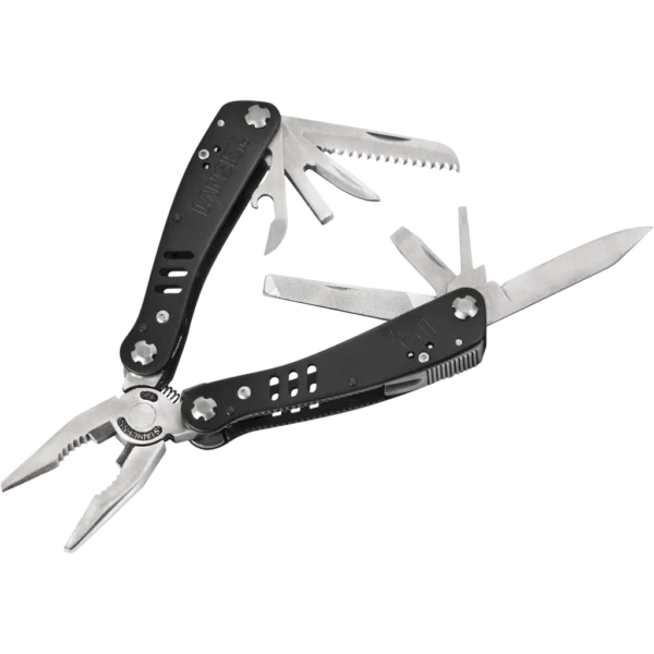 A complete tool kit in your pocket! Lansky's Industrial Multi-Tool delivers 20-tool functionality with the strength and heavy-duty durability of rustproof, 420 HC stainless steel construction, combining utility with substance to manhandle the toughest jobs. The Multi-Tool stows into a handsome, hard-wearing, reinforced, ballistic nylon sheath with snap closure. The sheath also has an internal pocket to hold the included 1/4" socket and bit accessory set. Length, open: 6.25 inches Length, closed: 4.125 inches Weight: 9.6 oz. Hardened Steel tool with needle nosed pliers/grippers Wire Cutter Plain Blade Serrated Blade Small screwdriver Medium screwdriver File/ruler Awl Magnetic bit holder Can opener/bottle opener Reinforced nylon sheath 20. Assorted bits