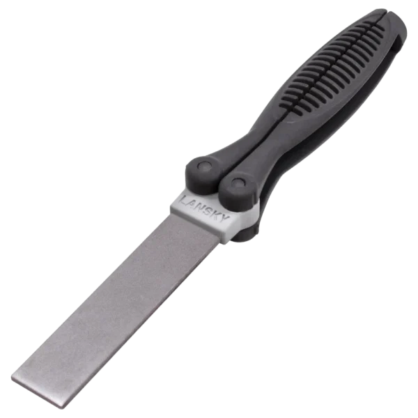 Lansky Double-Sided Diamond Folding Paddles offer two full surface diamond sharpeners in one compact unit, a medium grit for everyday sharpening and a fine grit to finish an edge.Both double-sided models have the same folding convenience and rubber over-molded handles and are the same size as our single-side folding diamond paddles. (3.625''x 0.8125''/9.2 x 2.1cm)