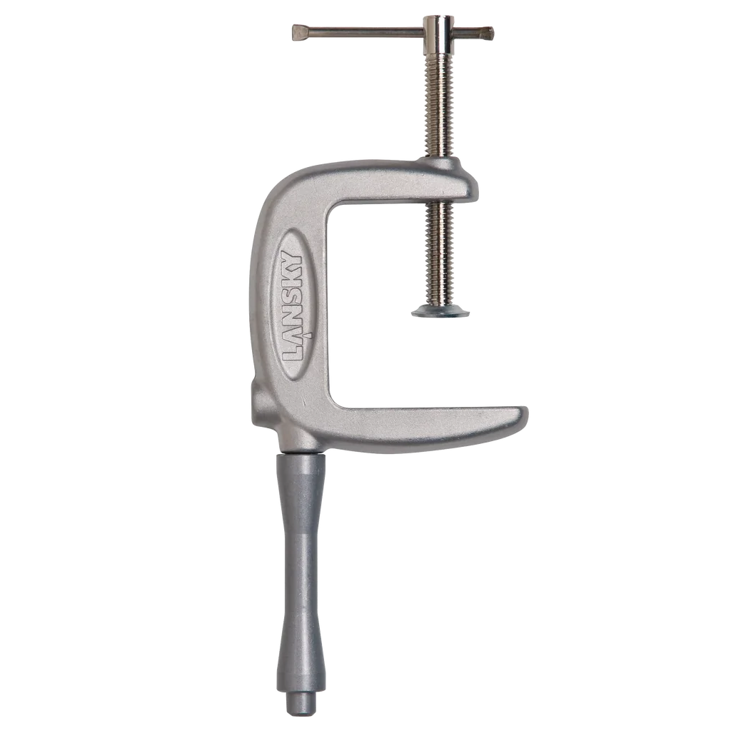 Perfect your sharpening capabilities with the patented Lansky Mounting System. Exclusive features allow convenient and accurate sharpening of multiple knives and larger size blades. Compact, lightweight aluminum C-Clamp base for easy secure set up anywhere C-Clamp base mounts vertical or horizontal in the shop or field 2 piece mount disassembles for easy storage 360° rotation: The knife and controlled angle sharpening system fully rotate on this mount Easy-to-use flip-over feature with Lansky's exclusive patented pin and post design Exclusive, patented flip over feature allows sharpening of both sides of the blade without additional handling