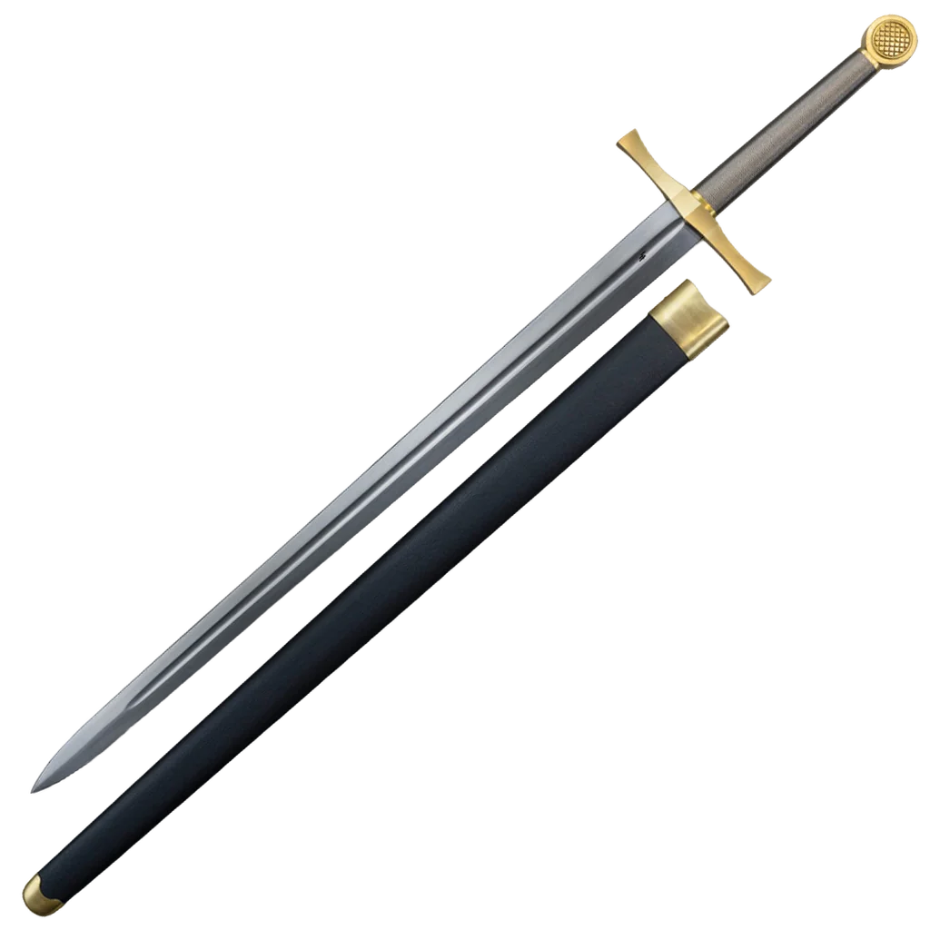 - A hardwood scabbard wrapped in leather with brass accents is included.