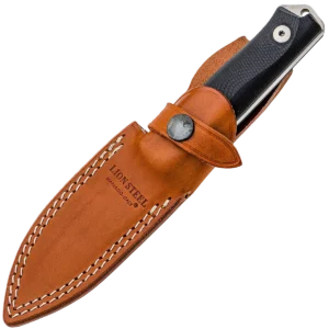 The LionSteel range of fixed blade knives is enriched with the new born “B41” Bushcraft knife. The B41 is the B40 “twin brother”. It is the tool for the natural life enthusiasts, great for wood carving thanks to the stonewashed Sleipner stainless steel blade and fire-crafting using the back flat tang. It’s easy to be handled because of its light weight and average dimensions. The 3D milled grip is even more comfortable and ergonomic now. There are the same traditional variation with Olive or Santos wood handle and then there’s the technical one with G-10 and Micarta handle as it happens for the B40. It comes in the LionSteel brown leather sheath, with belt.