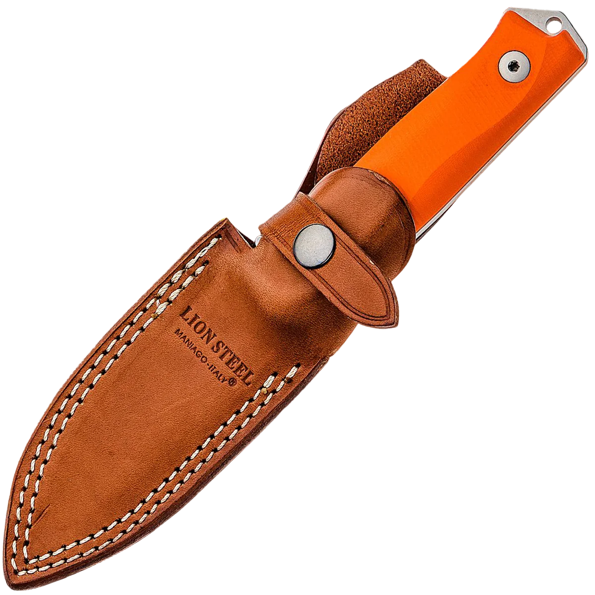 The LionSteel range of fixed blade knives is enriched with the new born “B41” Bushcraft knife. The B41 is the B40 “twin brother”. It is the tool for the natural life enthusiasts, great for wood carving thanks to the stonewashed Sleipner stainless steel blade and fire-crafting using the back flat tang. It’s easy to be handled because of its light weight and average dimensions. The 3D milled grip is even more comfortable and ergonomic now. There are the same traditional variation with Olive or Santos wood handle and then there’s the technical one with G-10 and Micarta handle as it happens for the B40. It comes in the LionSteel brown leather sheath, with belt.