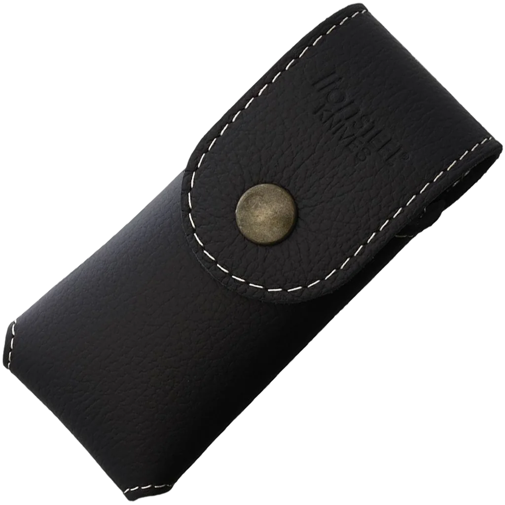 The LionSteel 900FDV1 PL belt sheath large is a black belt sheath for your LionSteel pocket knife. This sheath is made for the SR1, SR11, ROK, KUR, TM1 MI and the Myto. So, large LionSteel pocket knives. With this sheath you can carry the pocket knife on your belt to make sure you can quickly use it. The closure is enhanced with a nice gold-coloured press-stud. The inner size of this belt sheath is 12 cm deep, 4.5 cm wide and 2 cm high.
