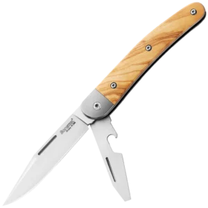 The Jack is the new modernised traditional folding knife made by LionSteel. It is the perfect pocket knife, a classic style developed in a modern way with innovative technology and high quality materials. The Jack features an M390 sintered steel clip point blade in its first variation, then you can have also the screw driver / cap lifter stainless steel blade, and in the third variation there’s even the spiral corkscrew. It is equipped with titanium bolsters and liners, while the scales can be made of olive wood, santos wood, green canvas, black G10 or carbon fiber. The Jack is supplied in a cardboard-box packaging and there is a leather sheath with clip as an additional accessory.
