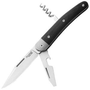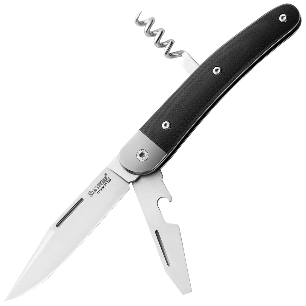 The Jack is the new modernised traditional folding knife made by LionSteel. It is the perfect pocket knife, a classic style developed in a modern way with innovative technology and high quality materials. The Jack features an M390 sintered steel clip point blade in its first variation, then you can have also the screw driver / cap lifter stainless steel blade, and in the third variation there’s even the spiral corkscrew. It is equipped with titanium bolsters and liners, while the scales can be made of olive wood, santos wood, green canvas, black G10 or carbon fiber. The Jack is supplied in a cardboard-box packaging and there is a leather sheath with clip as an additional accessory.