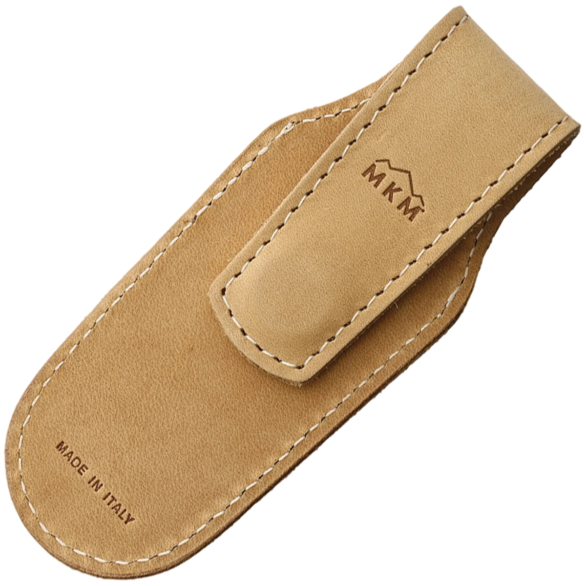 The LionSteel 900MK01 sheath with magnetic closure is a stunning leather sheath for your LionSteel pocket knife. This sheath is made for the LionSteel LionSteel Opera, Jack, Gitano, BestMan, Barlow, Bolus, TRE and Thrill. So, small LionSteel pocket knives. The sheath is also enhanced with a magnetic closure. You put the sheath in your pocket and the flap will secure itself over the edge of your pocket onto the sheath. As such you carry the sheath on the inside of your pocket. To make sure the knife won't come into contact with other gear in your pocket and leave behind scratches. It also means you have quick access to your pocket knife, without having to look for it. And, of course, it looks very fancy when you combine a pocket knife with this sheath. The sheath is 13 cm long and 5 cm wide. It is perfect for pocket knives with a closed length of up to 10.5 cm. The construction of this sheath is very flat. The leather will take the shape of the pocket knife when you put it in the sheath. That is why you need to take into account that very thick pocket knives won't fit in this sheath.