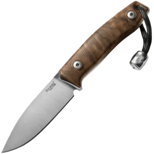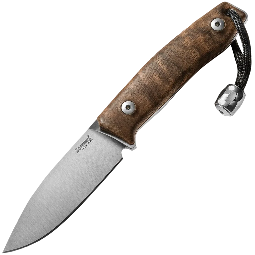 The M1 is a bushcraft fixed blade knife. It is a very precious excursion mate without being cumbersome, due to its limited dimensions. The M1 is equipped with a satin finished M390 sintered steel blade, which guarantees high stainlessness and a long-endurance sharpening. The handle is available in five versions: olive wood, walnut wood, Santos wood, black G10 and orange G10. The M1 features a lanyard to which a small titanium pearl is attached by a screw system. This application allows an easier extraction of the knife from its sheath. The M1 is supplied with a leather sheath for all the different handle versions.