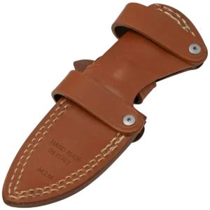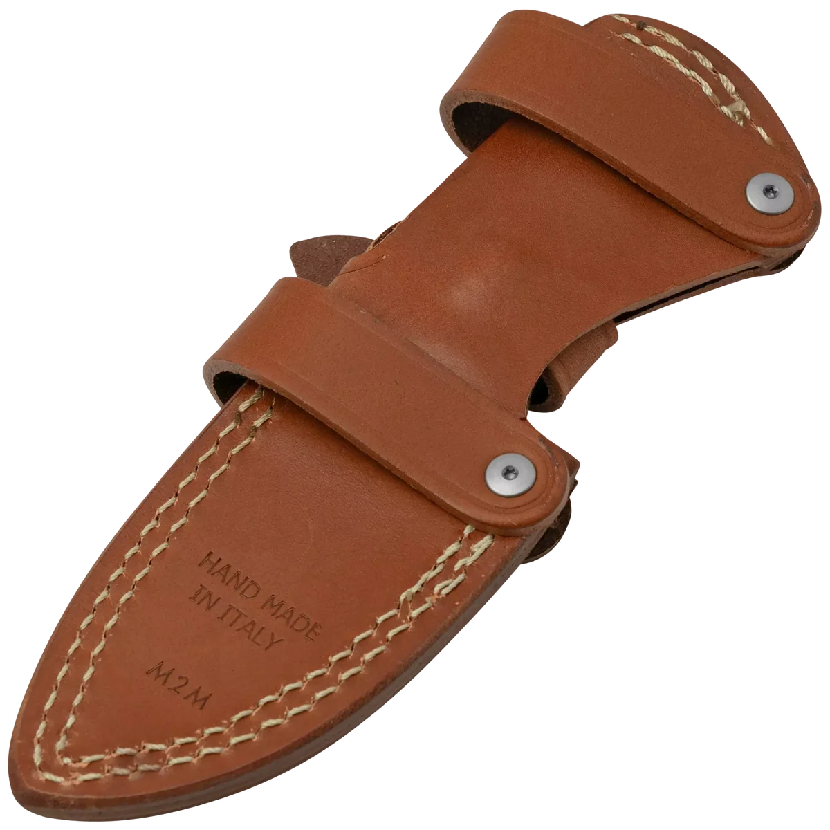 M2M is the evolution of the older brother M2, it features a longer handle in order to have a better grip when using the knife throughout different works. At the same time the handle scales have been 3D milled in order to have a more ergonomic shape. The blade is built out of M390 sintered steel and satin finished. The leather sheath is stronger and more flexible, it has been improved with a double seam and adding two removable leather straps with screws. In this way the designated holster allows either vertical or horizontal carry, also on M.O.L.L.E. systems, in various positions and solutions.