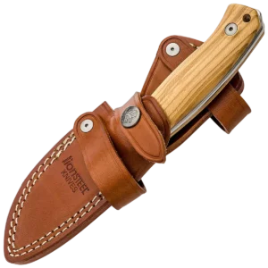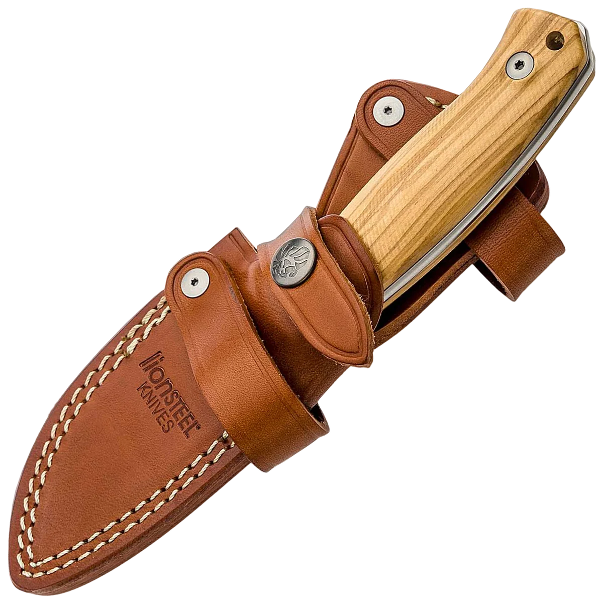 M2M is the evolution of the older brother M2, it features a longer handle in order to have a better grip when using the knife throughout different works. At the same time the handle scales have been 3D milled in order to have a more ergonomic shape. The blade is built out of M390 sintered steel and satin finished. The leather sheath is stronger and more flexible, it has been improved with a double seam and adding two removable leather straps with screws. In this way the designated holster allows either vertical or horizontal carry, also on M.O.L.L.E. systems, in various positions and solutions.