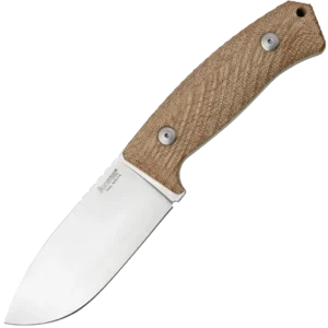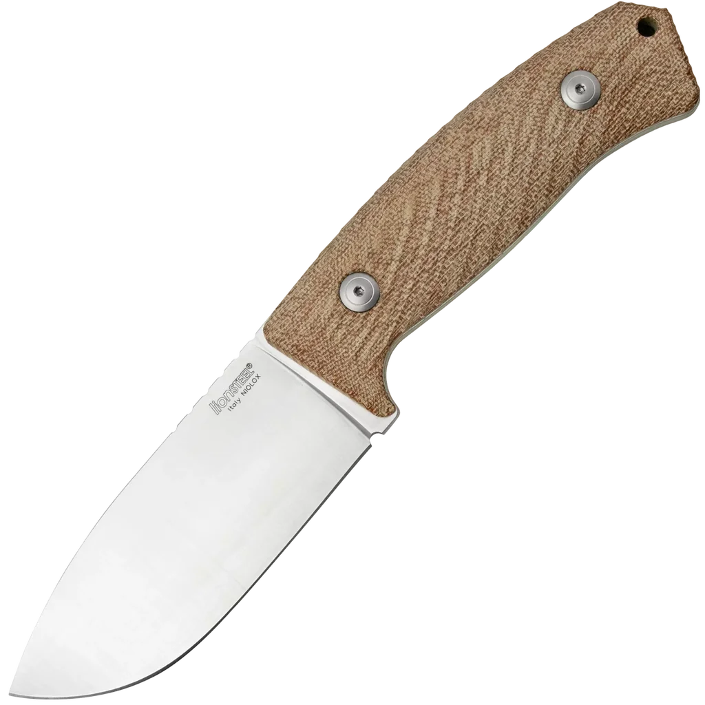 The M3 is a fixed blade knife, easy to wear because of its reduced dimensions, and still reliable for every camp usage. The M3 is equipped with a satin finished Niolox stainless steel blade. The scales can be disassembled and are available in olive wood, Santos wood and Micarta. The M3 is provided with a 3D machined handle, thus processed to obtain the best ergonomics. The surface texture allows a very firm grip. The handle is fixed with stainless steel Torx T8 screws. The M3 is supplied with a leather sheath for the wooden and Canvas versions, and a Cordura sheath for the Black Micarta version.