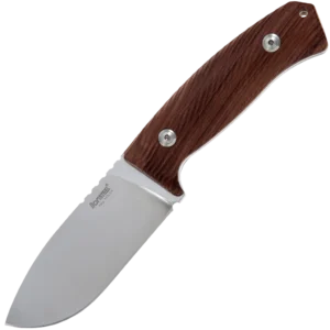 The M3 is a fixed blade knife, easy to wear because of its reduced dimensions, and still reliable for every camp usage. The M3 is equipped with a satin finished Niolox stainless steel blade. The scales can be disassembled and are available in olive wood, Santos wood and Micarta. The M3 is provided with a 3D machined handle, thus processed to obtain the best ergonomics. The surface texture allows a very firm grip. The handle is fixed with stainless steel Torx T8 screws. The M3 is supplied with a leather sheath for the wooden and Canvas versions, and a Cordura sheath for the Black Micarta version.