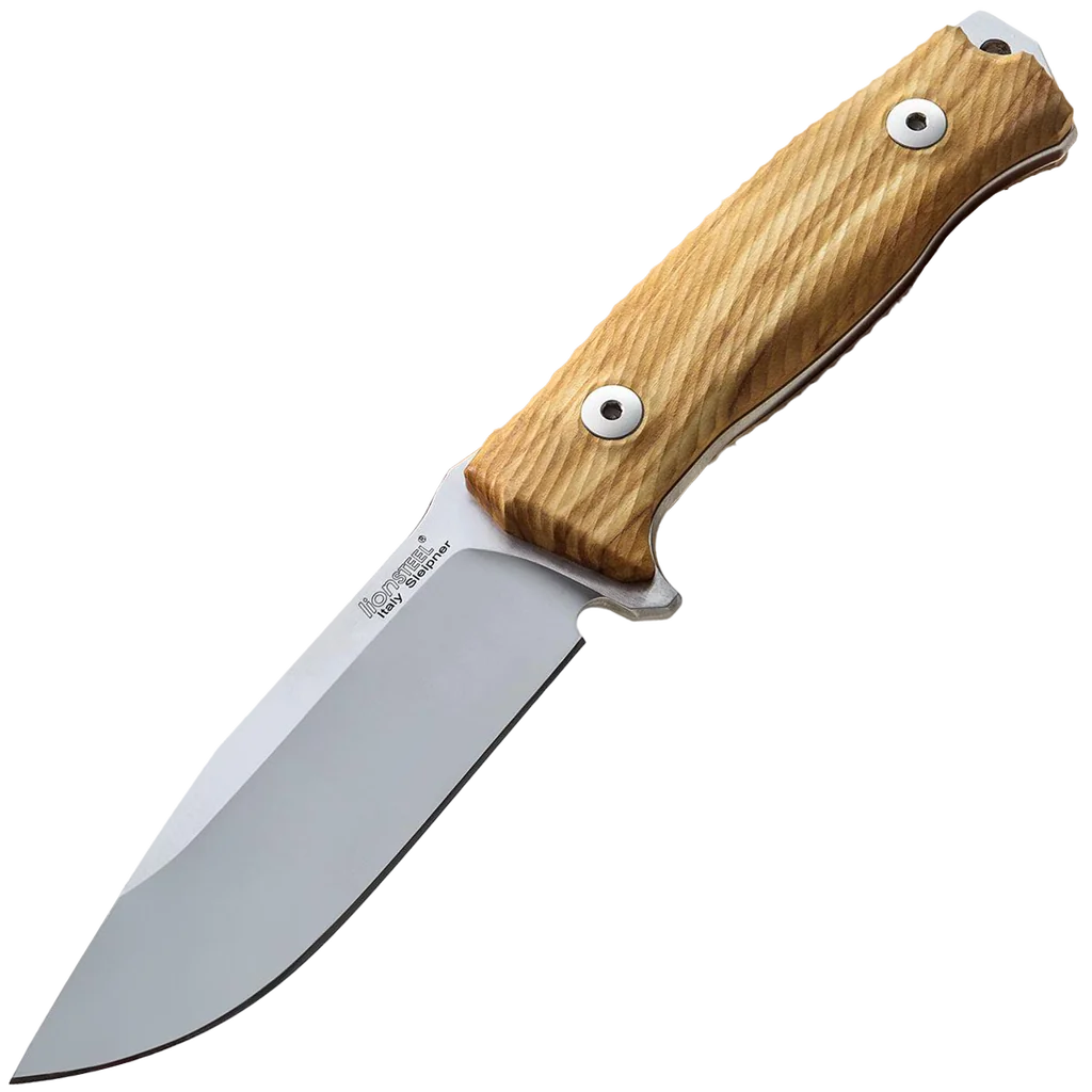 The M5 is a fixed blade knife, born to be very easy to wear while still being very reliable for every outdoor and camp usage because of its large blade. The M5 is equipped with a Sleipner stainless steel blade, which is available either satin finished or stone washed, and it is manufactured with three different handles: olive wood, Santos wood and black G10. The handle is fixed with stainless steel Torx T8 screws. The M5 is suitable for a variety of camp usages, cutting branches or processing food for instance. Its average dimensions and reduced weight make this knife an excellent all-around tool that is ideal in every outdoor activity.