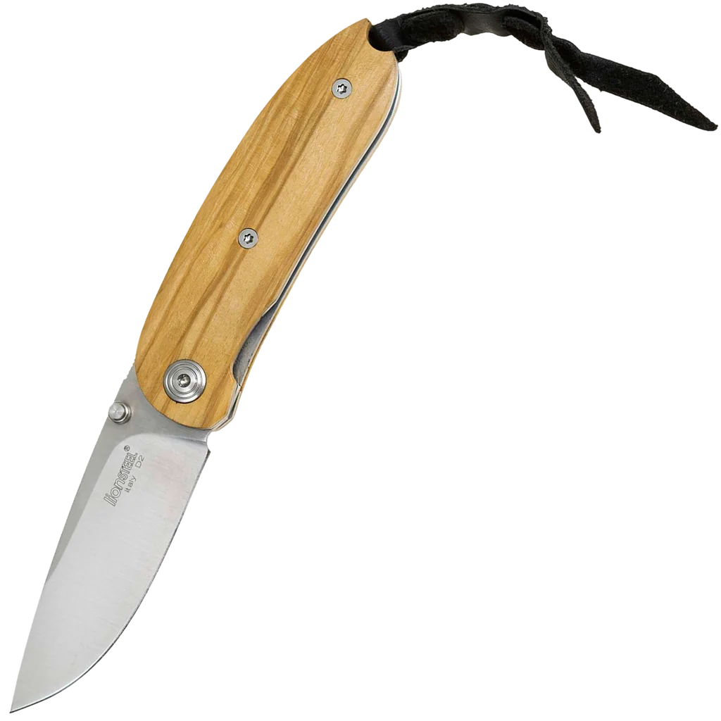 The Mini is a folding knife of reduced dimensions, it is light yet high quality meaning it is reliable for most everyday tasks. It's equipped with an AISI D2 stainless steel blade that offers resistance to corrosion and sharpening durability, and is secured with a solid liner blade lock. The handle scales are made from olive wood.