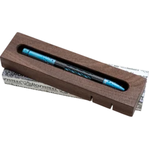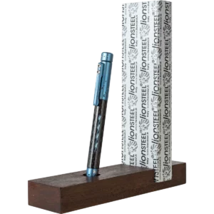 Nyala is the pen made by LionSteel. The body is entirely made of titanium. The insert is available either in Super Dense Twist damascus (by Damasteel) or in carbon fiber. This pen features a twist pen mechanic, and the space refill is made by Fisher, Space Pen PR4. Available colours: grey shine, blue shine, bronze shine, blue matte.