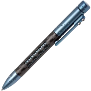 Nyala is the pen made by LionSteel. The body is entirely made of titanium. The insert is available either in Super Dense Twist damascus (by Damasteel) or in carbon fiber. This pen features a twist pen mechanic, and the space refill is made by Fisher, Space Pen PR4. Available colours: grey shine, blue shine, bronze shine, blue matte.