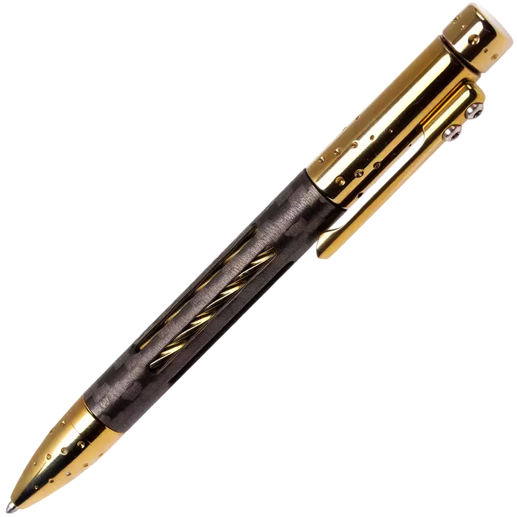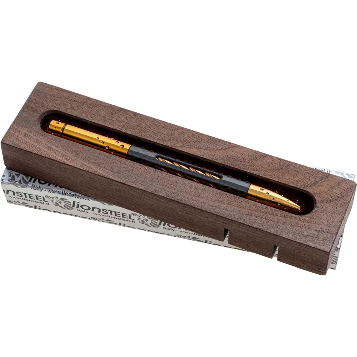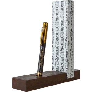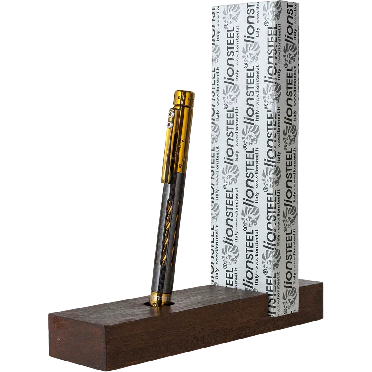 Nyala is the pen made by LionSteel. The body is entirely made of titanium. The insert is available either in Super Dense Twist damascus (by Damasteel) or in carbon fiber. This pen features a twist pen mechanic, and the space refill is made by Fisher, Space Pen PR4. Available colours: grey shine, blue shine, bronze shine, blue matte.