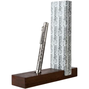 Nyala is the pen made by LionSteel. The body is entirely made of titanium. The insert is available either in Super Dense Twist damascus (by Damasteel) or in carbon fiber. This pen features a twist pen mechanic, and the space refill is made by Fisher, Space Pen PR4. Available colours: grey shine, blue shine, bronze shine, blue matte.