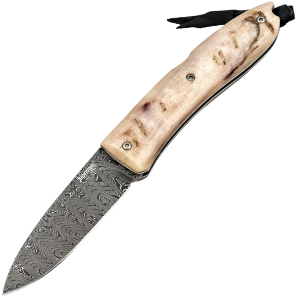 The LionSteel Opera features a conservative yet substantial Italian design by Max – Massimo Salice Sanna. Everything from the contoured handle design to the crowned spine demonstrates elegancy in simplicity. The blade on this knife is premium Damascus steel with a razor sharp edge. The handle/frame features stainless steel liners with genuine ram horn scales. The Opera Damascus comes with an elegantly weaved leather lanyard and is presented in a refined wooden box.