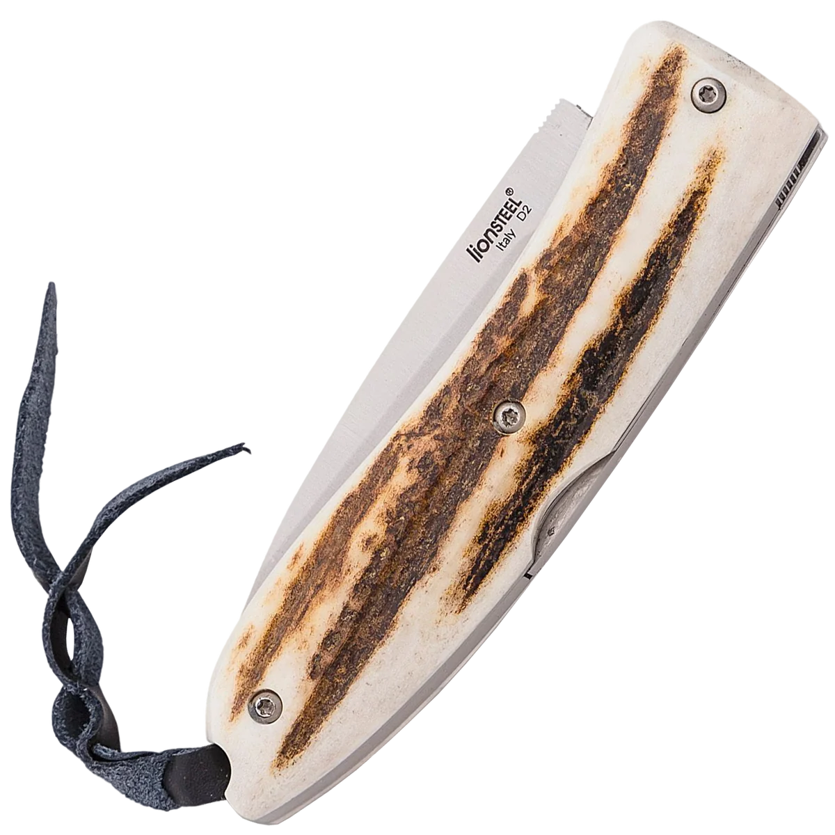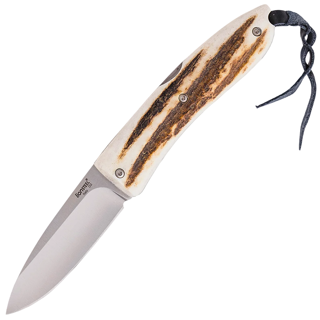 The LionSteel Opera is a perfect pocket knife to always carry with you. The versions with natural materials give this practical pocket knife also a chic look. The beautiful Italian design compliments the stag horn of this knife. Because stag horn always looks just a tad different, every single knife is truly unique. Because looks are very important for this version of the knife, the thumb stud, which would interrupt the line of the blade, is left out. Fortunately, even two handed opening of this knife goes very smoothly. The blade of D2 Steel is hard and retains its sharpness for a long time. You can also adjust the hinge of the Opera, if this should be necessary. The material of the handle is of course very important for the look. But also a lot of attention has been paid to small details. The ridges on the blade are subtly placed along the back of the knife. The opening for a lanyard is beautiful processed in the back instead of what you usually see: a hole in the knife. The steel liners are cut out to save weight. And that, you can feel.