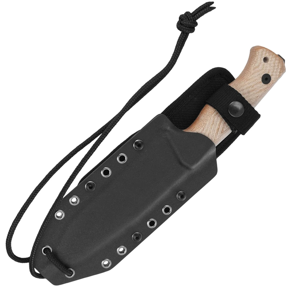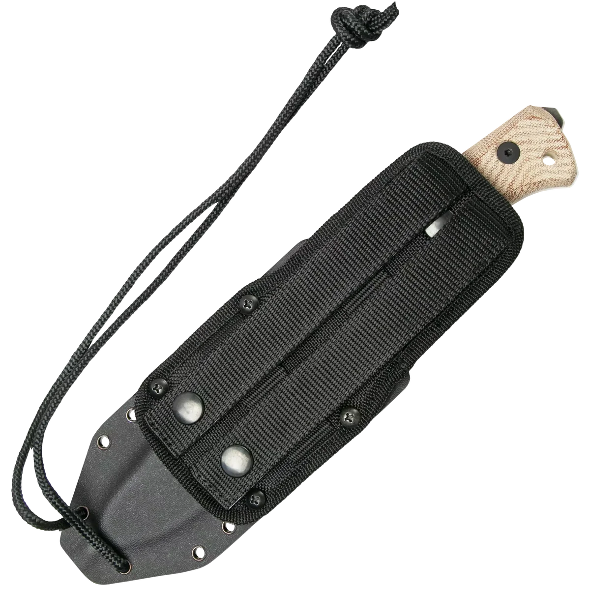 T6 is the last born in the fixed blade family, and it stays in betwen the M7 and the T5 in terms of dimensions. It is the right companion in any camping trip, and every other outdoor situation. It features a strong CPM 3V steel blade and it is equipped with a SOLID® handle, milled out of a Canvas micarta block, which ensure a firm and safe grip. Deisgned by Molletta, the T6 has an aggressive profile and is therefore particularly recommended when there is need for a robust, safe, and easy to handle tactical instrument. Supplied with its Kydex holster provided of reversible Cordura structure with M.o.l.l.e. system for safe and easy carrying, the T6 is available with satin-finished or “Old Black” treated blade.