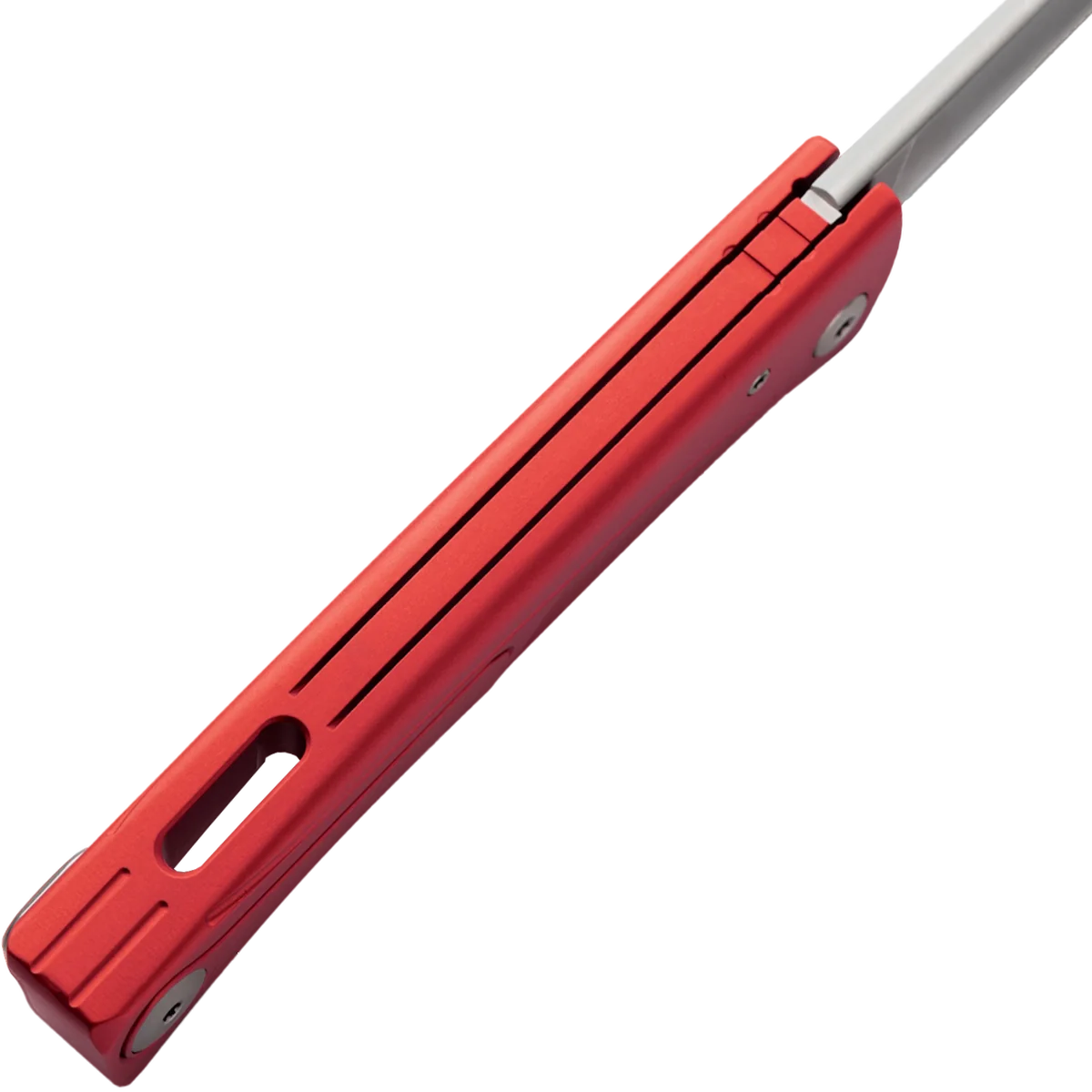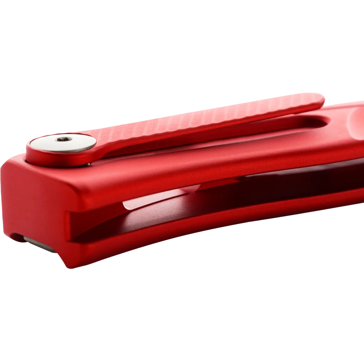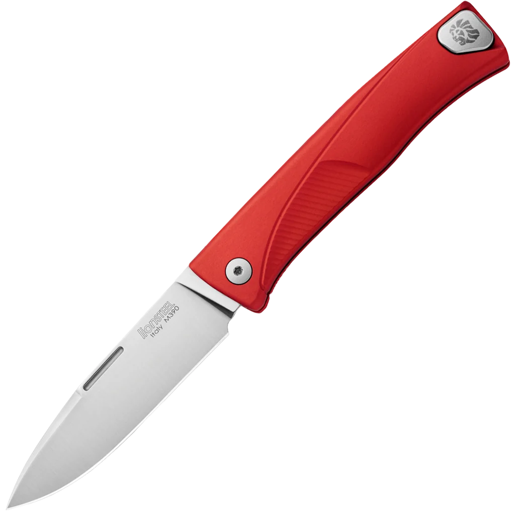 The Lionsteel Thrill lives up to its name. The Thrill is a sensational modern gentleman's knife, enhanced with an ingenious slipjoint mechanism and a handle made from one solid block of aluminium. This version of the Thrill is lighter than the titanium version which ensures optimal carrying comfort. Lionsteel is a master when it comes to mill work. It is something they once again demonstrate with the Thrill. The new and improved integral slipjoint mechanism is namely milled from the integral handle. So no individual spring. As is common with many slipjoints. It is not only a very cool detail, it also makes the Thrill incredibly user-friendly. To clean the knife you only need to loosen the hinge to remove the blade. That's it! But that is not all. The slipjoint mechanism is enhanced with steel insert to prevent wear and tear in the long run. Something we often only see with titanium framelock mechanisms. The blade is made from the popular Böhler M390. An Austrian type of super steel that retains its sharpness for a very long time. M390 is also very corrosion resistant. One of the most popular premium choices at the moment. The carefully applied nail-nick makes it easy to open, despite the strong spring. Because the knife doesn't have a real lock and because you open it with two hands you can legally carry in many countries. Practical for during your travels. The cherry on top? The H.WAY system: Hide What Annoys You. For many pocket knife users a protruding pocket clip can be real annoyance. With this system the pocket clip will simply disappear in the handle when you use the knife. It is namely enhanced with a spring. The only thing you need to do if you want to hang it from your pocket is pressing the light button on the other side of the handle. At first it might take some getting used to, but after some time this will go automatically. All in all the LionSteel Thrill is one of the best slipjoint knives ever produced. Not only in terms of looks, also when it comes to innovative ideas and modifications. Looking for a unique and modern gentleman's knife? Stop looking!