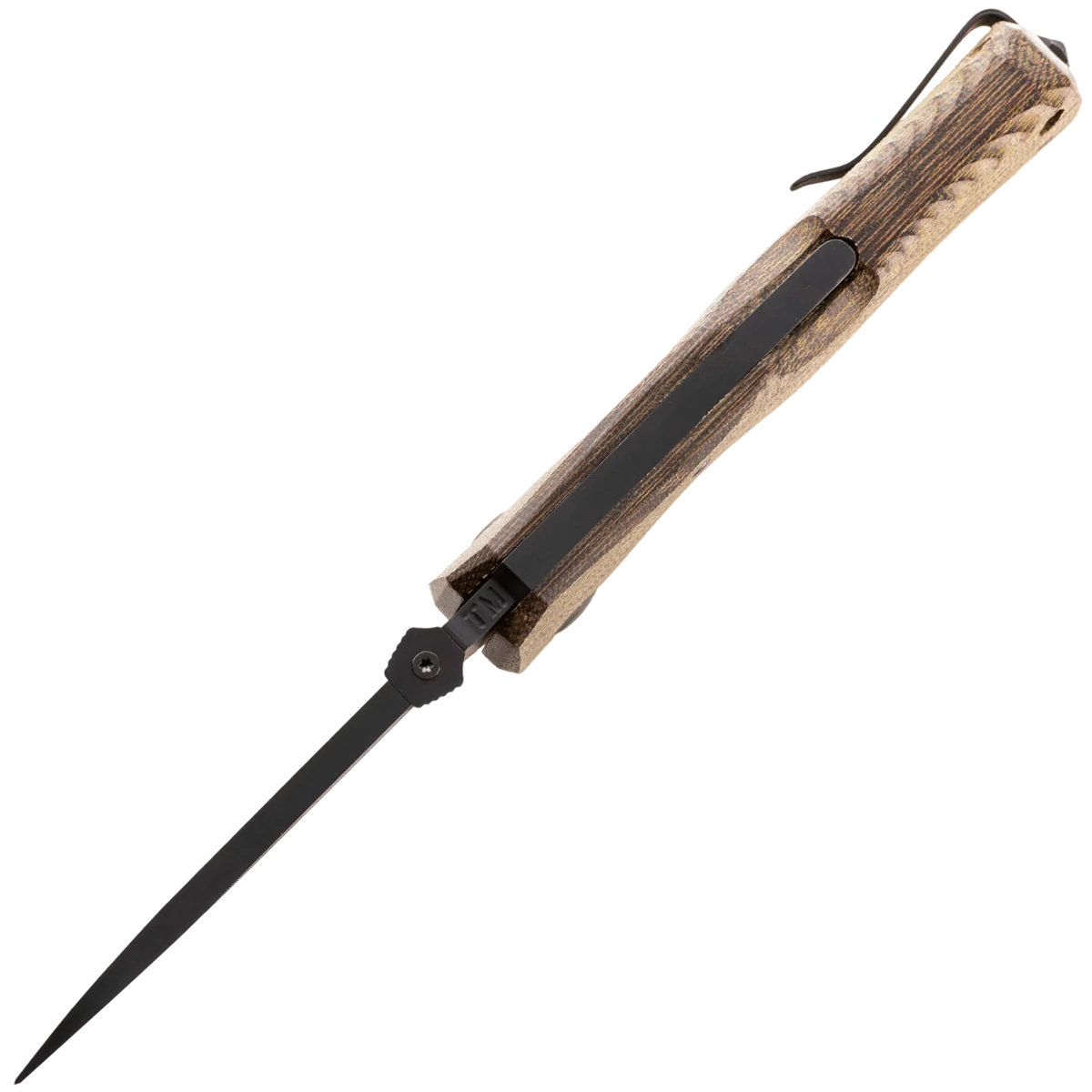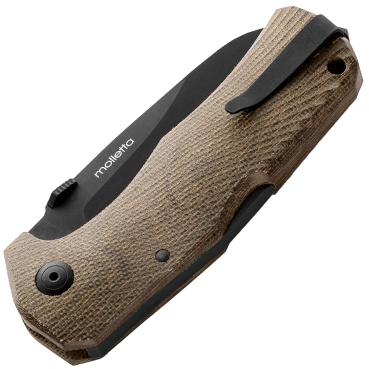 The TM1 is a folding knife provided with a SOLID® knife technology handle. Light, strong and easy to wear, the TM1 is a very good tool for the everyday activities. The TM1 is equipped with a Sleipner steel blade which is available either satin finished or black coated. It is the only SOLID® knife to be provided with the lock back blade locking system, which ensures improved durability to the locking mechanism. The handle is obtained from a 4D machined unique block of either Micarta, Canvas or carbon fiber. The stainless steel clip can be fitted on either side of the handle. Designed by Molletta, the TM1 is provided with the exclusive IKBS ball bearing system which allows easy and smooth opening and folding blade movements. The clip fixing screw is equipped with a tungsten carbide glass-breaker. The TM1 is supplied in a cardboard box.