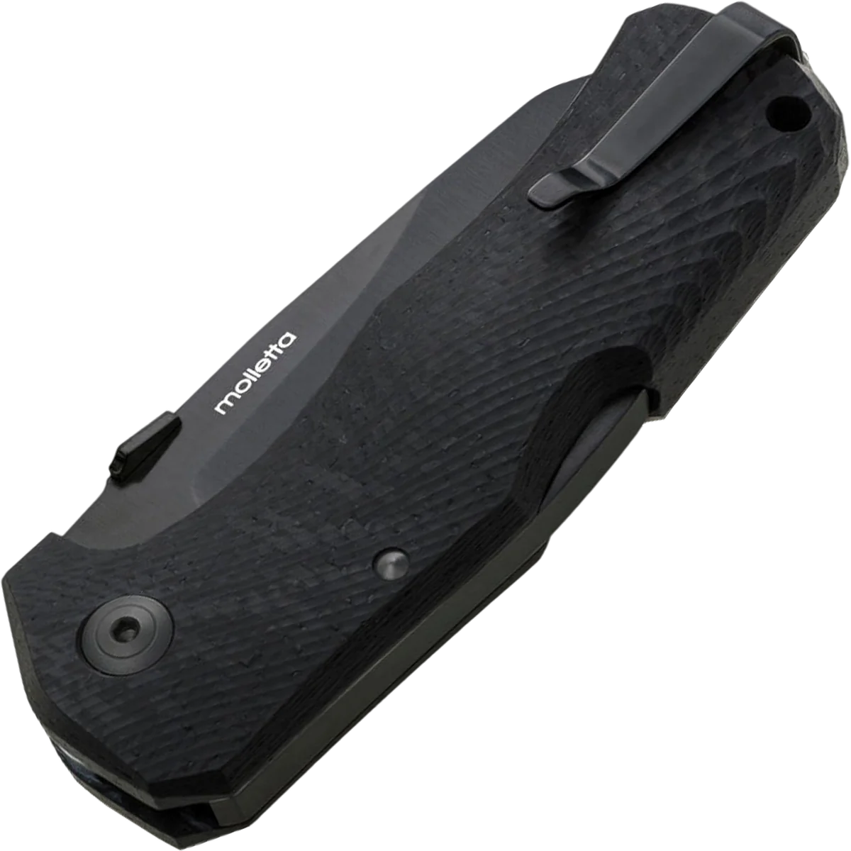 In addition to the well-known and popular SR1 and TiSpine-models, LionSteel also made a pocket knife with back lock called the TM1. The remarkable thing is that the handle, which is provided with subtle curves, is milled from one piece of carbon. The blade turns extremely smooth thanks to the use of IKBS-bearings. It is amazing how smoothly the blade opens and closes. And to make it all complete, the back of the pocket knife also houses a glass breaker. It is a pleasure to use this knife. The wide blade of Sleipner-steel can be easily opened with one hand by both left- and right-handed persons using the thumb support. The Sleipner-steel has a hardness of 60-61 HRC. This type of steel is classified as one of the hardest kinds of steel. Because of the back lock this knife is perfect for left- and right-handed persons. Knife maker Molletta has delivered a beautiful knife.