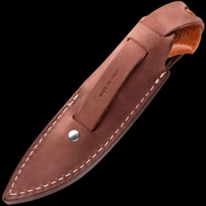 The Willy is the last fixed blade knife made by LionSteel in 2023. It’s a pocket, EDC compact knife that features an M390 steel satin finished blade, joint into the Solid handle through a Titanium guard. The Solid handle is available in different variations, and its ergonomics fit comfortably the hand palm of the final user and help to make precision works and carving. It comes with a refined brown leather holster with beltloop on the back. The Willy is designed by Gianluigi “Wilson” Simonella, and for his whole life he's been a custom knife maker, artisan of raw materials and one of the Italian knife makers Corporation (CIC) founders.