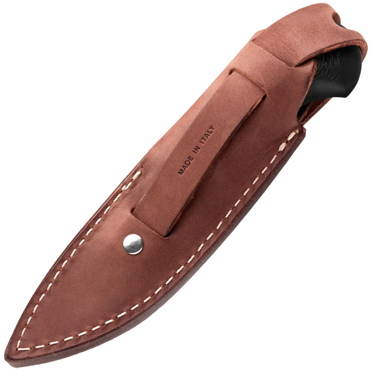 The Willy is the last fixed blade knife made by LionSteel in 2023. It’s a pocket, EDC compact knife that features an M390 steel satin finished blade, joint into the Solid handle through a Titanium guard. The Solid handle is available in different variations, and its ergonomics fit comfortably the hand palm of the final user and help to make precision works and carving. It comes with a refined brown leather holster with beltloop on the back. The Willy is designed by Gianluigi “Wilson” Simonella, and for his whole life he's been a custom knife maker, artisan of raw materials and one of the Italian knife makers Corporation (CIC) founders.