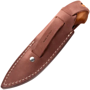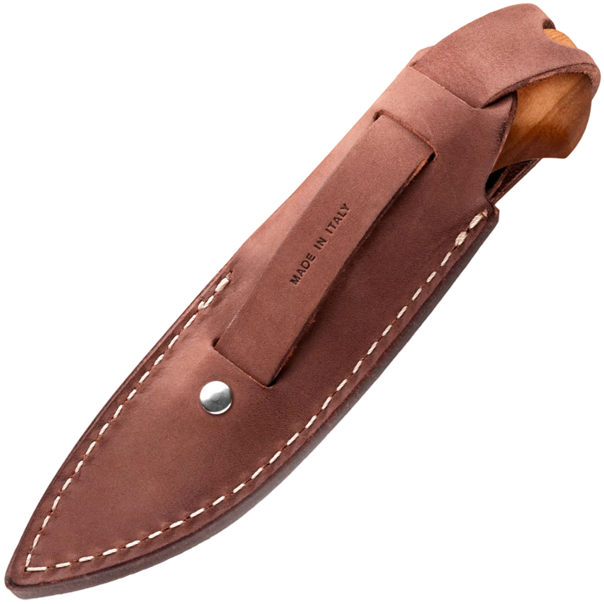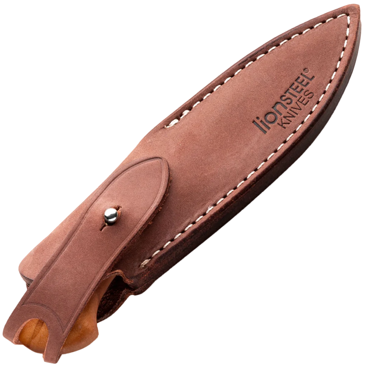 The Willy is the last fixed blade knife made by LionSteel in 2023. It’s a pocket, EDC compact knife that features an M390 steel satin finished blade, joint into the Solid handle through a Titanium guard. The Solid handle is available in different variations, and its ergonomics fit comfortably the hand palm of the final user and help to make precision works and carving. It comes with a refined brown leather holster with beltloop on the back. The Willy is designed by Gianluigi “Wilson” Simonella, and for his whole life he's been a custom knife maker, artisan of raw materials and one of the Italian knife makers Corporation (CIC) founders.