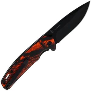 - Available in three distinctive finishes — black/orange camo, black/gold, or satin/black
