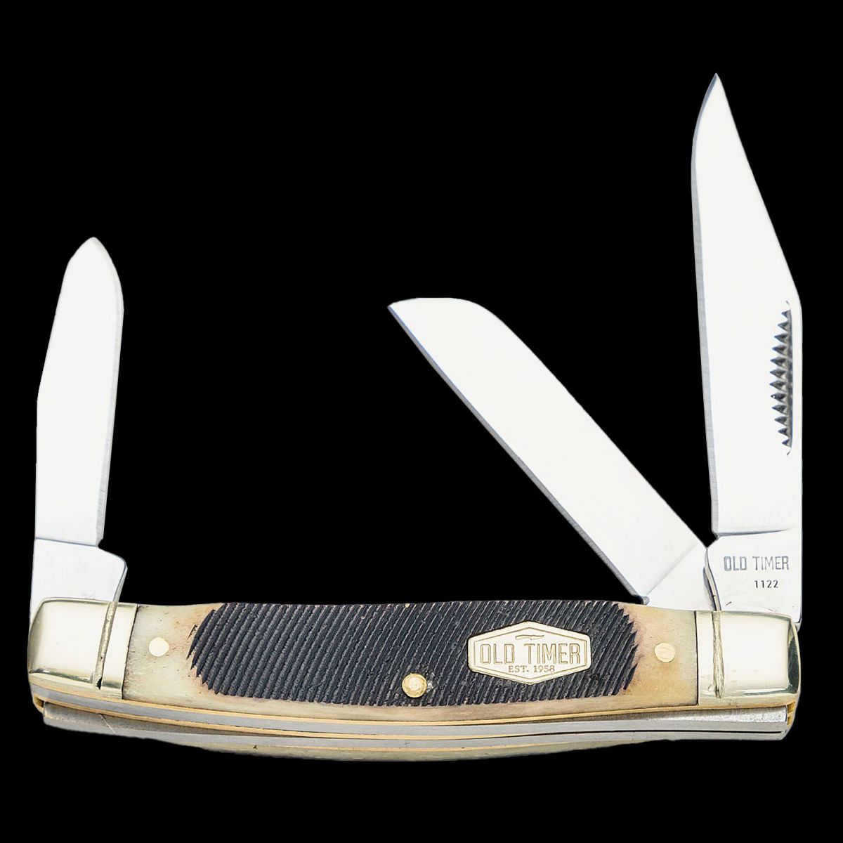 Old Timer Everlastingly Sharp Genuine Bone Middleman Folding Pocket Knife, Mirror Polished 9Cr18MoV High Carbon Stainless Steel Clip Point Blade, Sheepsfoot Blade, and Clip Point Pen Blade with Nail Pulls, Old Timer Sawcut Bone Handles with Nickel Silver Bolsters, Brass Pins, and Heat Treated Back Springs