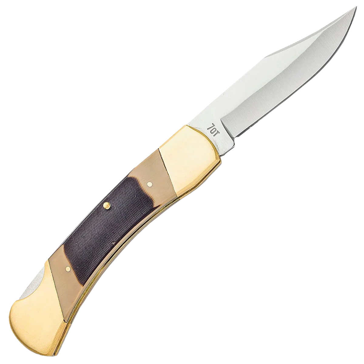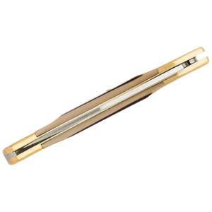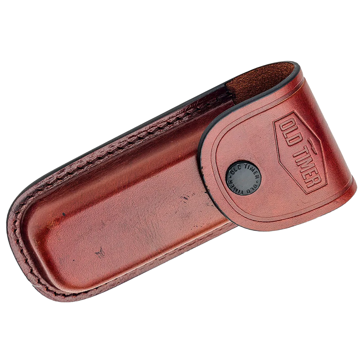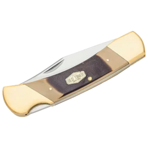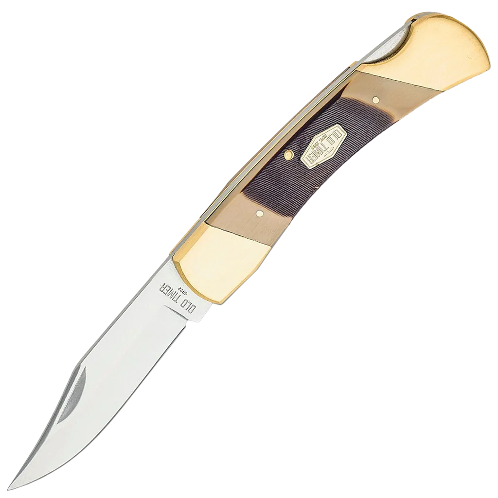 - Old Timer Cave Bear Folding Knife, 7Cr17MoV Stainless Steel satin finished clip point Blade with Nail Groove. Brown derlin handles with silver nickel bolsters, Lockack mechanism to ensure a securely locked blade with included brown leather sheath for easy transportation.