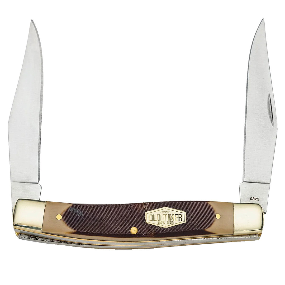 Old Timer Muskrat Folding Pocket Knife, 7Cr17 High Carbon Stainless Steel Duel Clip Point Blades with Nail Pulls, Old Timer Sawcut Handles with Nickel Silver Bolsters, Brass Pins, and Heat Treated Back Springs