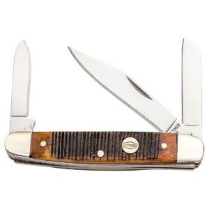The MIDDLEMAN – 34OTG is a part of Old Timer's Generational Series family. This traditional three-blade folder knife features 1095 high carbon steel blades handcrafted in the USA. The knife comes with clip point, pen, and sheepsfoot blades primed to get things done. Paired with the 1095 steel is Old Timer's sawcut textured chestnut bone handle with nickel silver bolsters. Its handcrafted nature allows each knife to come with its own unique look and feel.