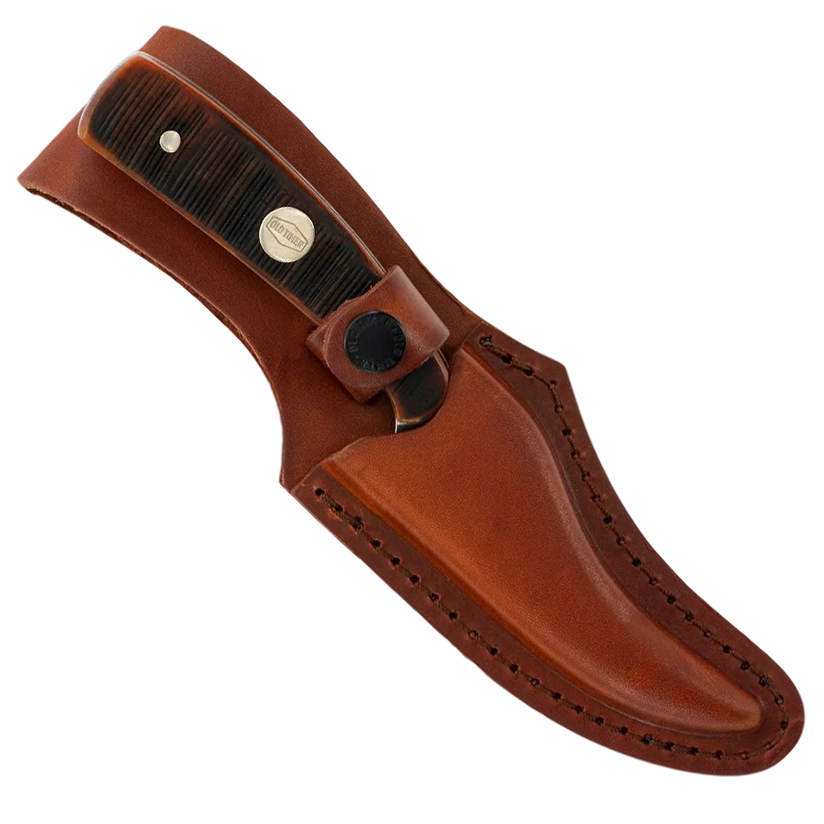 The SHARPFINGER – 152OT is a part of Old Timer's USA Made Generational Series family. The Sharpfinger is their most iconic knife to date so it's only right that they brought this knife back to its original glory. The Sharpfinger design has inspired generations of knifemakers and greatly influenced the knife industry. It features a quality 1095 high carbon steel blade handcrafted in the USA. Paired with that upgraded steel are their chestnut bone handles with a sawcut texturing that helps with your grip. Its handcrafted nature allows each knife to come with its own unique look and feel. The knife comes with a quality leather belt sheath.