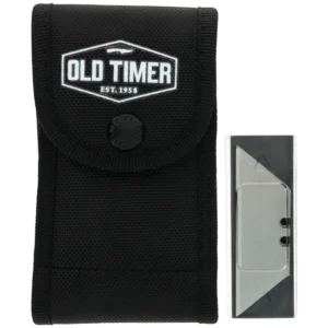 The Old Timer replaceable blade gut hook features an ordinary razor blade design with a simple and effective quick-change system. When the blade goes dull simply pop it out and replace it with a fresh blade. The blade system breaks down for easy cleaning and comes with a soft case for storage. It comes with 4 replacement blades and can accommodate any regular size razor blades.